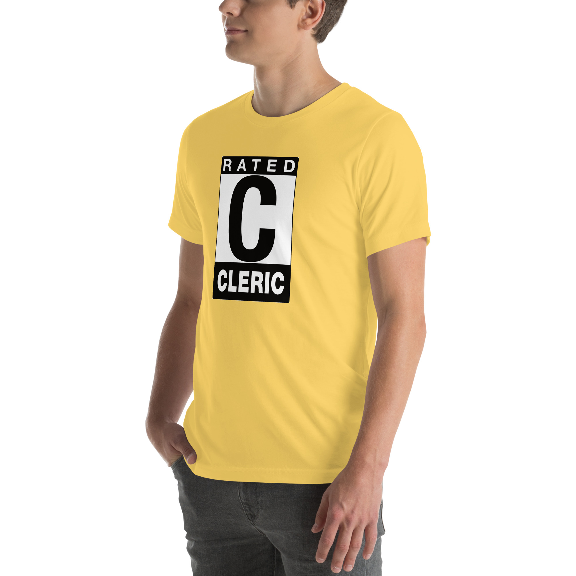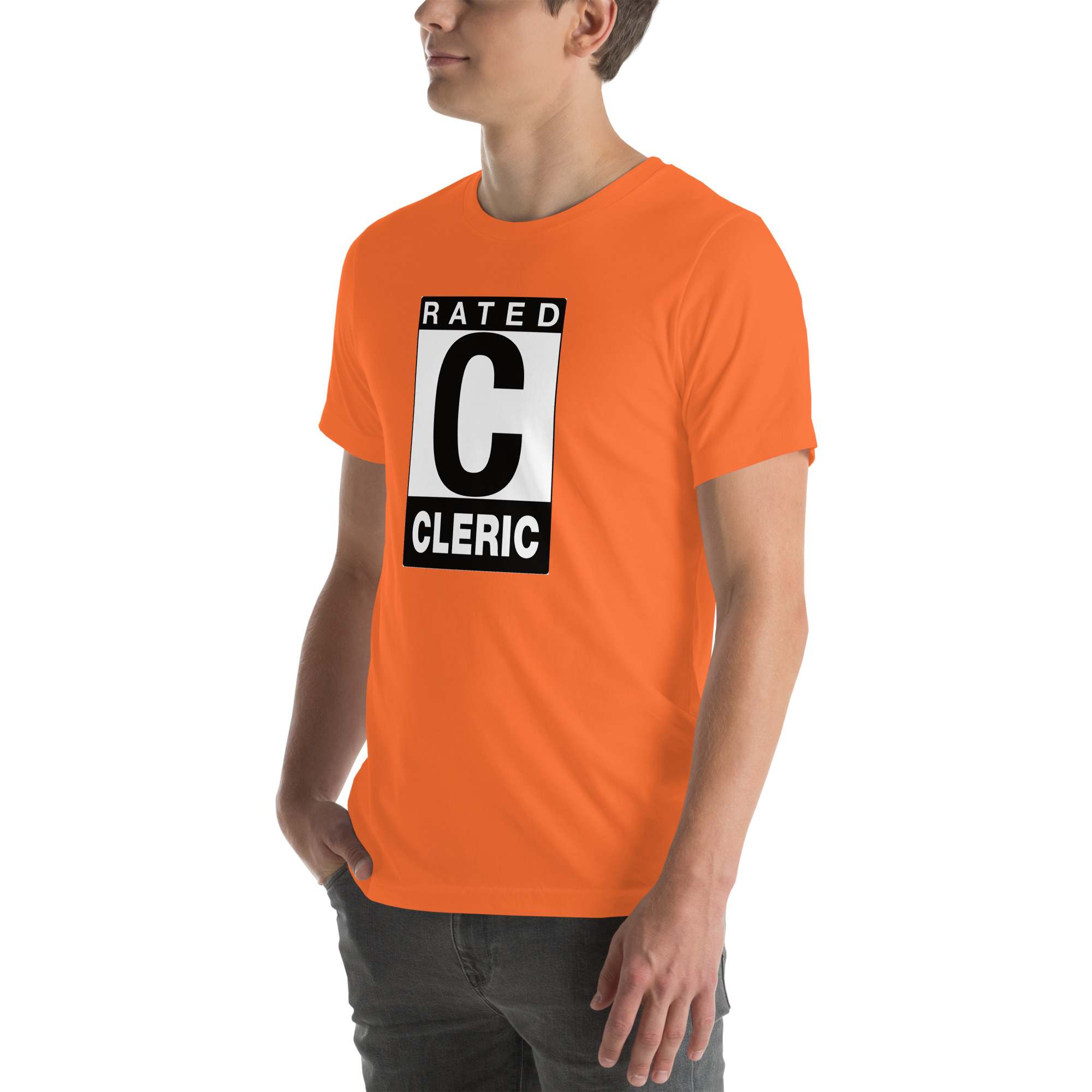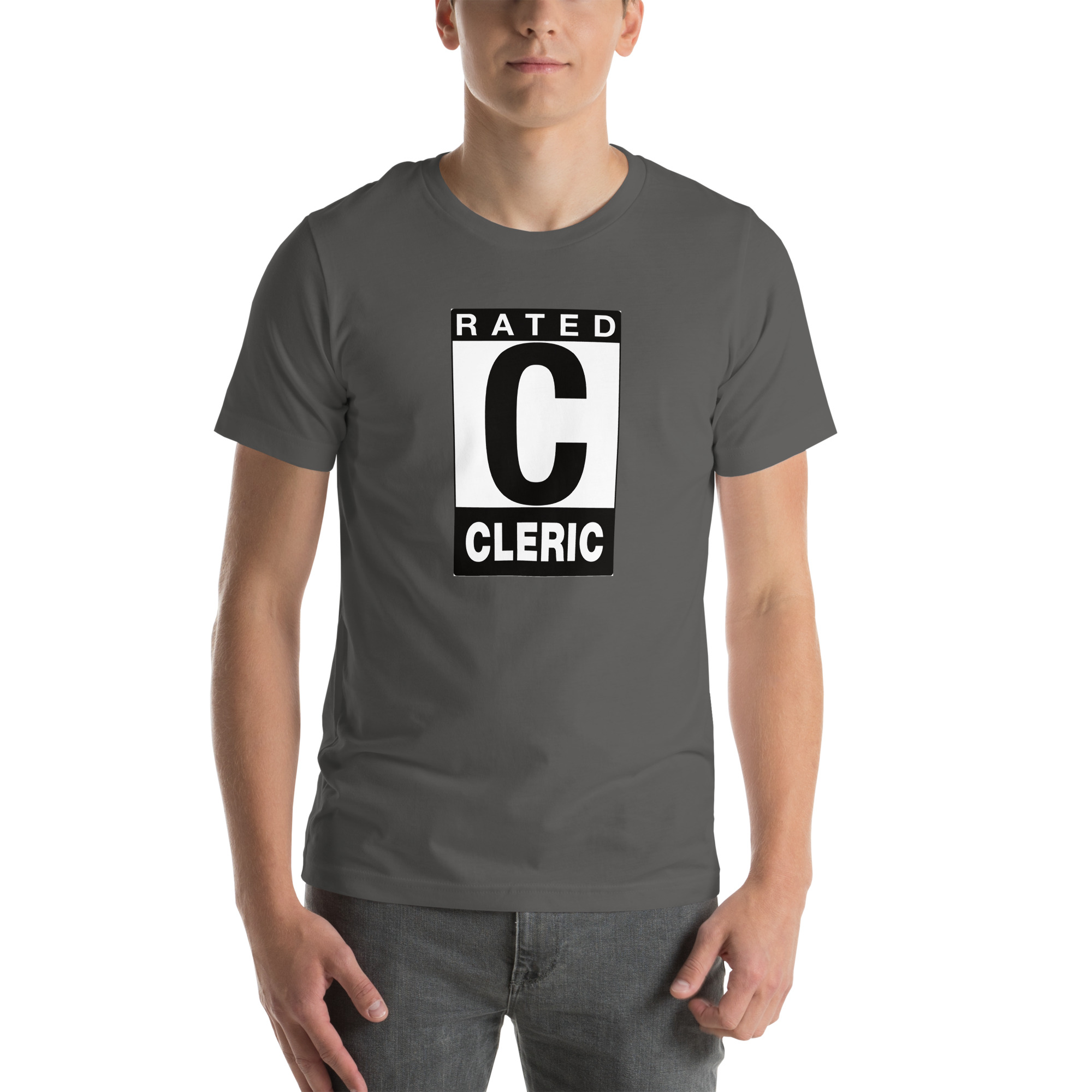 Rated C for CLERIC: This divinely blessed tee channels sacred power with an iconic rating design that shows you’re everyone’s favorite healer. Perfect for those who keep the party alive while bringing divine wrath to their enemies, this shirt radiates both holy light and style points.